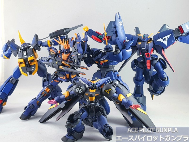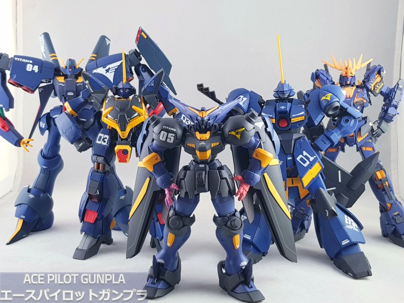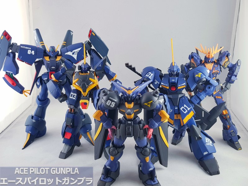 Last year I started building my own team of Titans-themed mobile suits to match the 5 pilot layout introduced in Gundam Build Divers. Obviously, the team was inspired by the Ginyu Force from DBZ, so I chose an extremely varied team to fit the bill. The Team is comprised of: