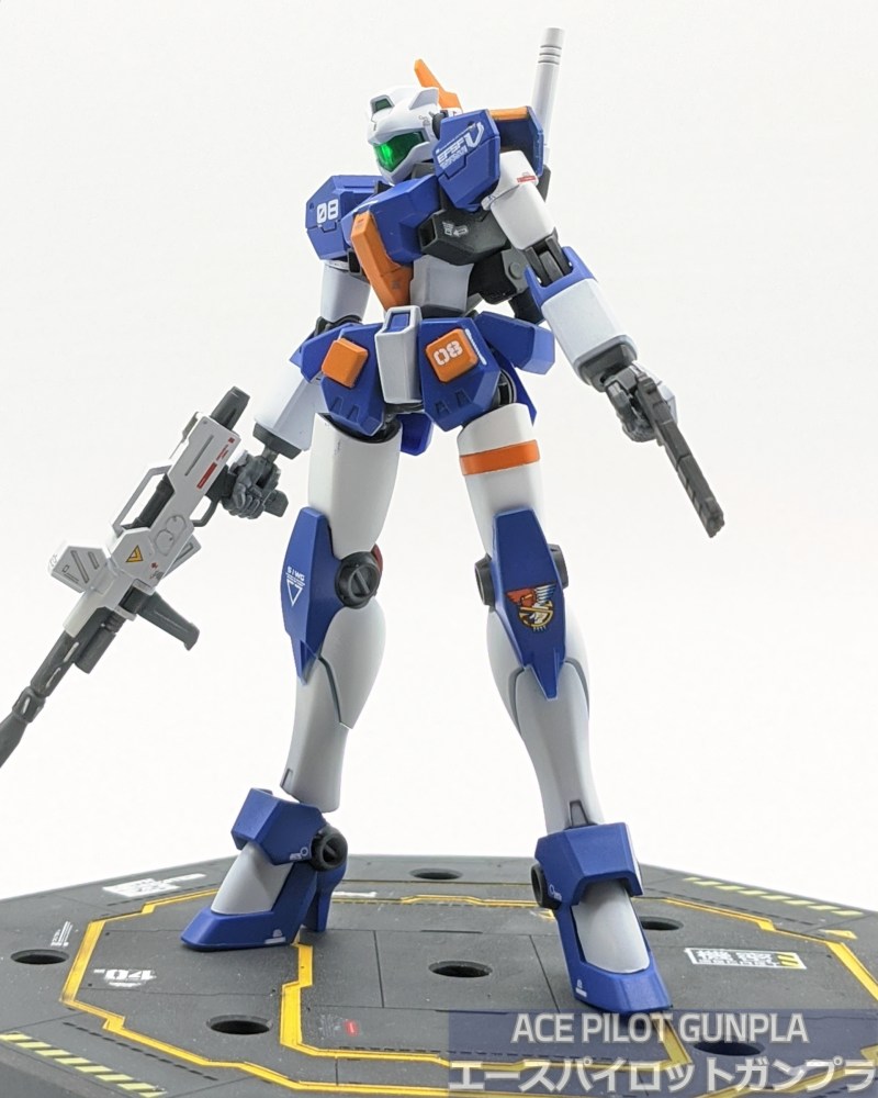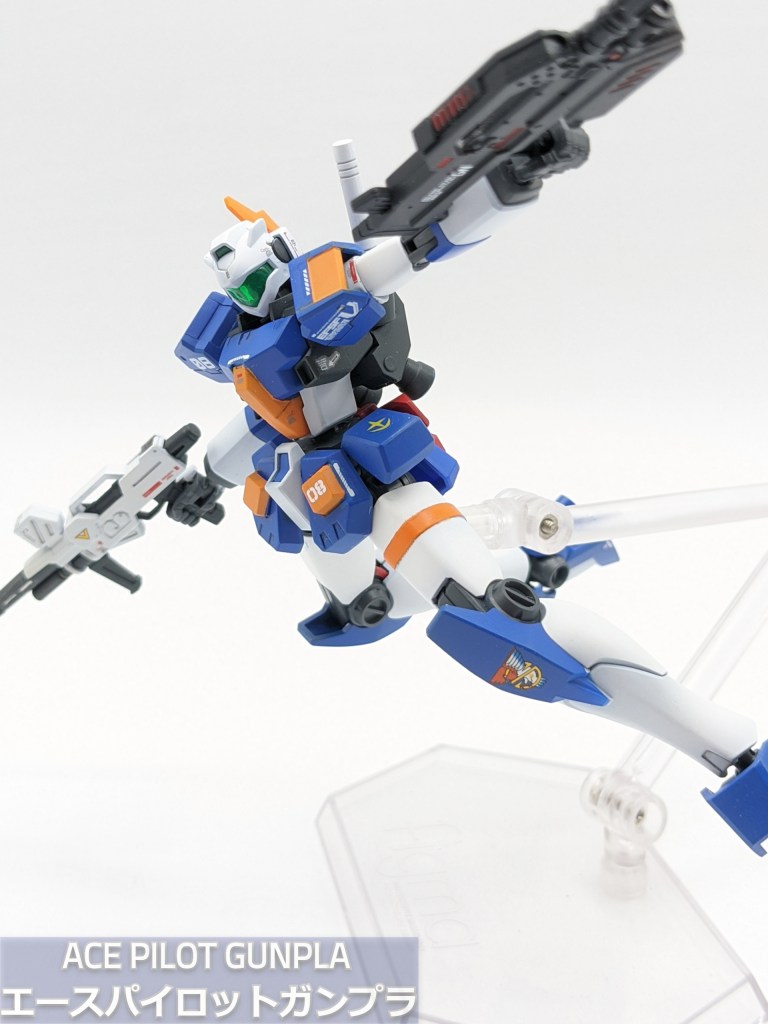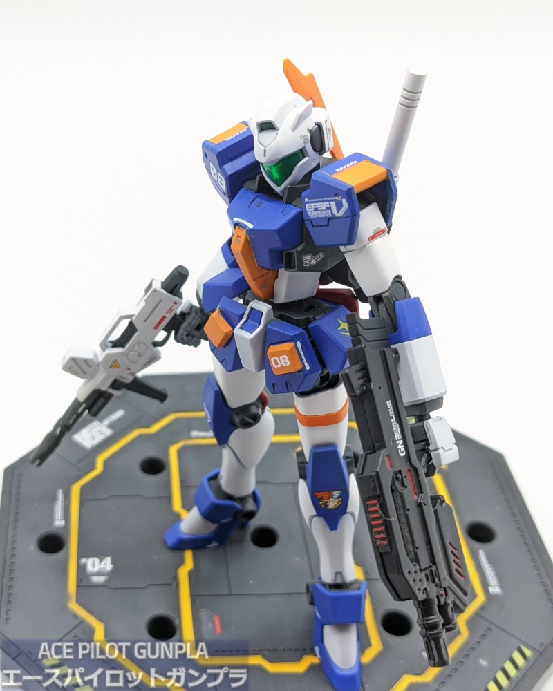 The rifle in the left hand is from the hg ground gundam and the one in the right is from the Atlas Gundam!