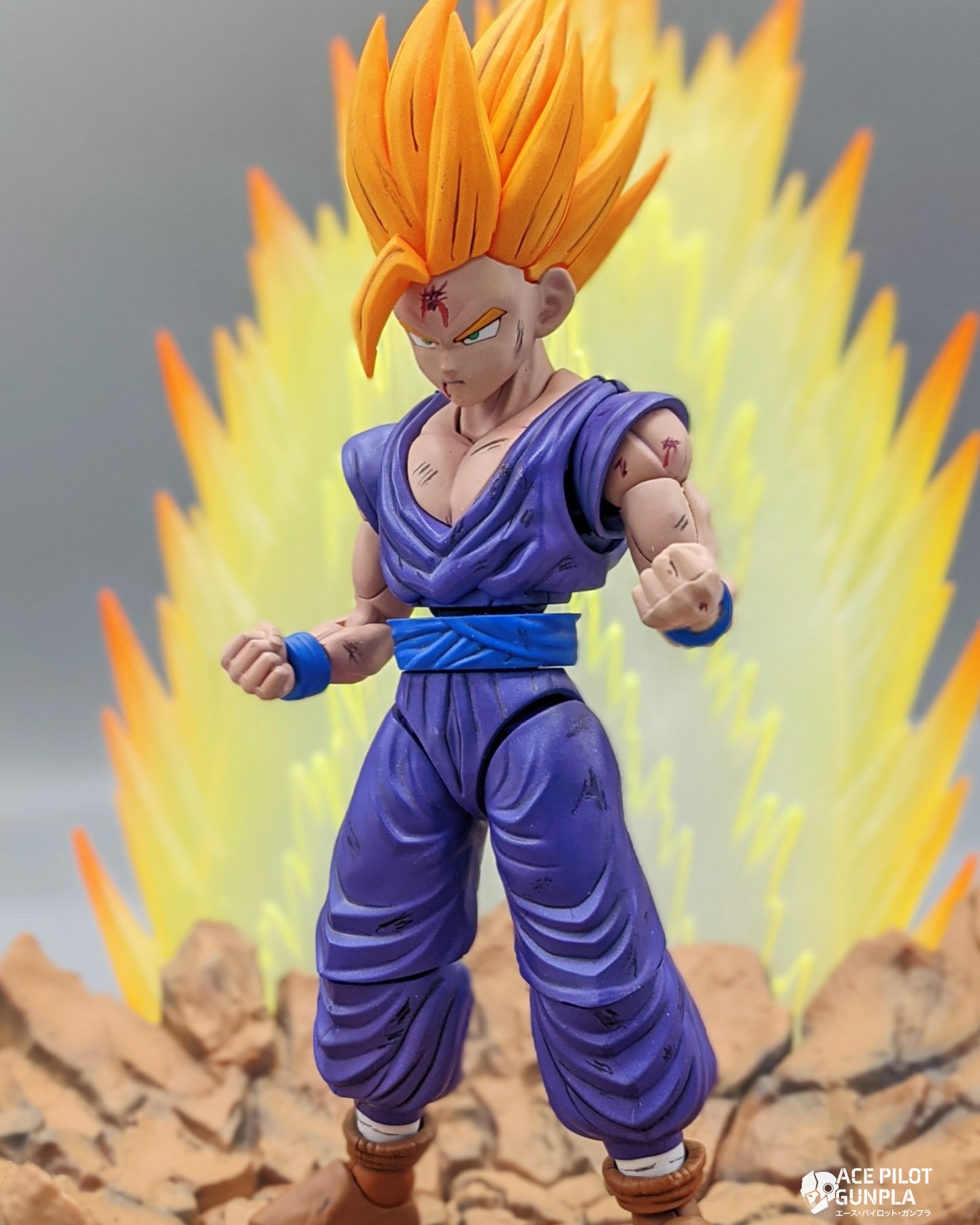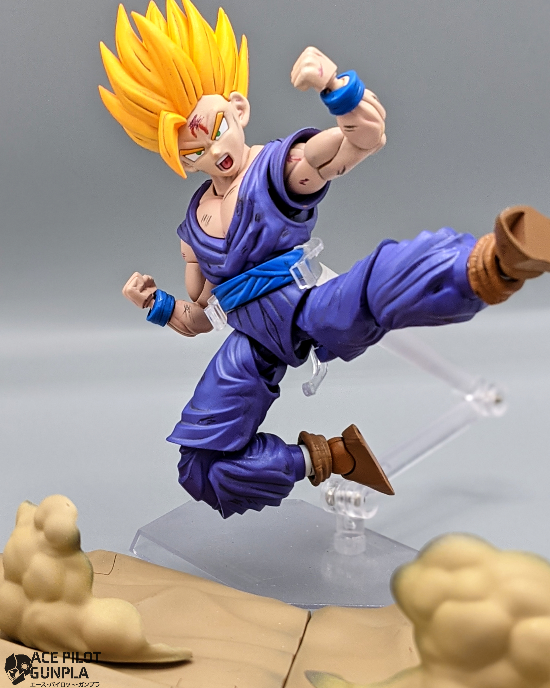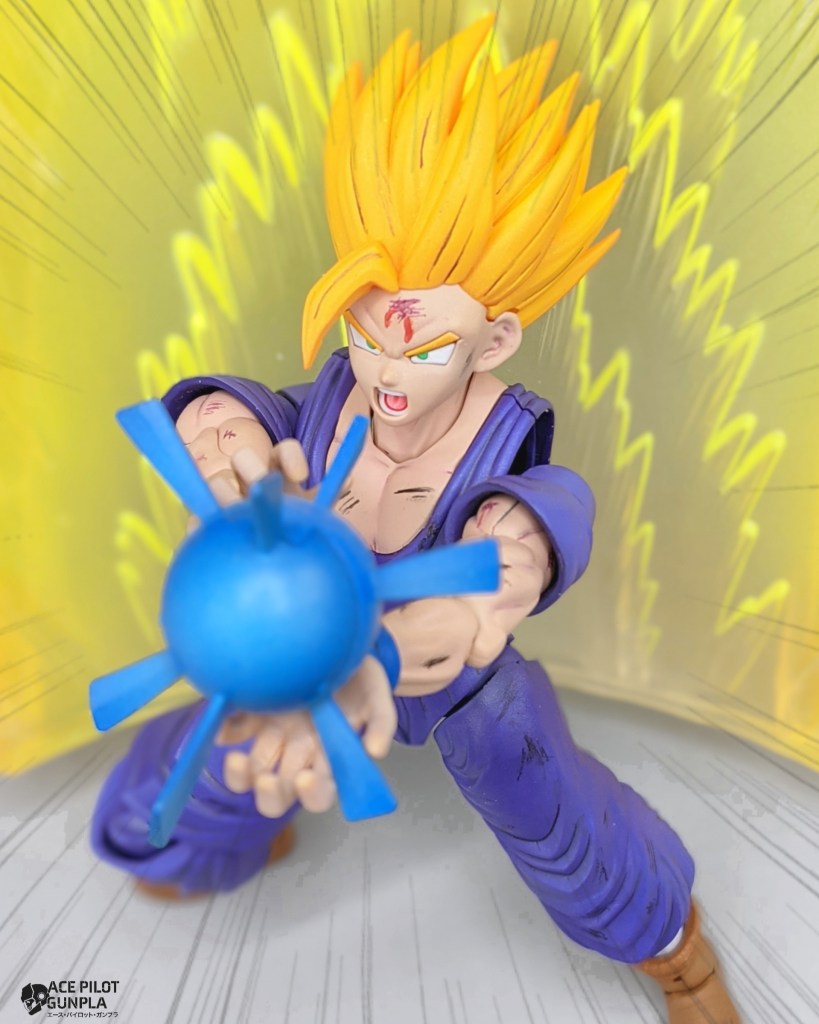 Took a breather from gunpla to make a Dragon Ball Figure-rise kit from one of my favorite animes I grew up with! Even though this isn’t my first figure-rise kit, I decided to experiment with a few new techniques like adding scuff marks to the skin and clothes and blood. I think the result came out great and definitely is more reminiscent of the Gohan’s look facing off against Perfect Cell. I tried to create a variety of poses from the show as well by playing with angles and effect parts.