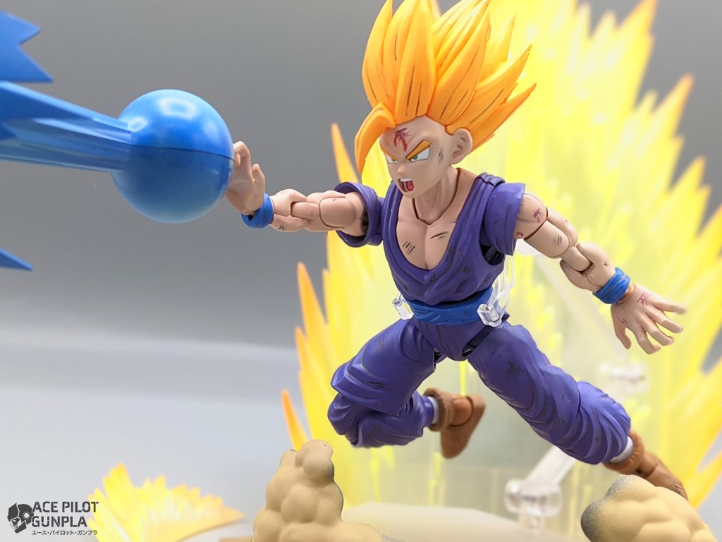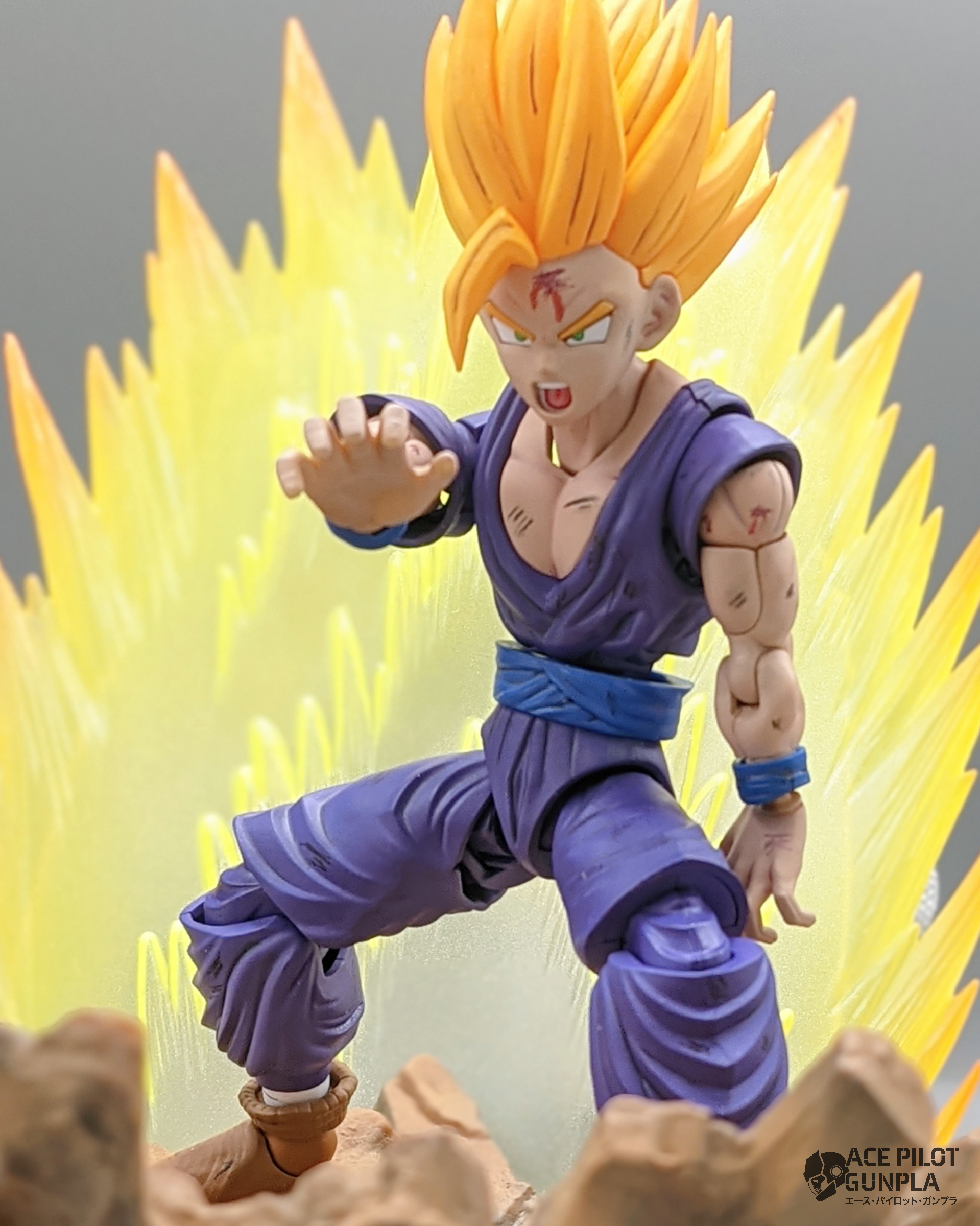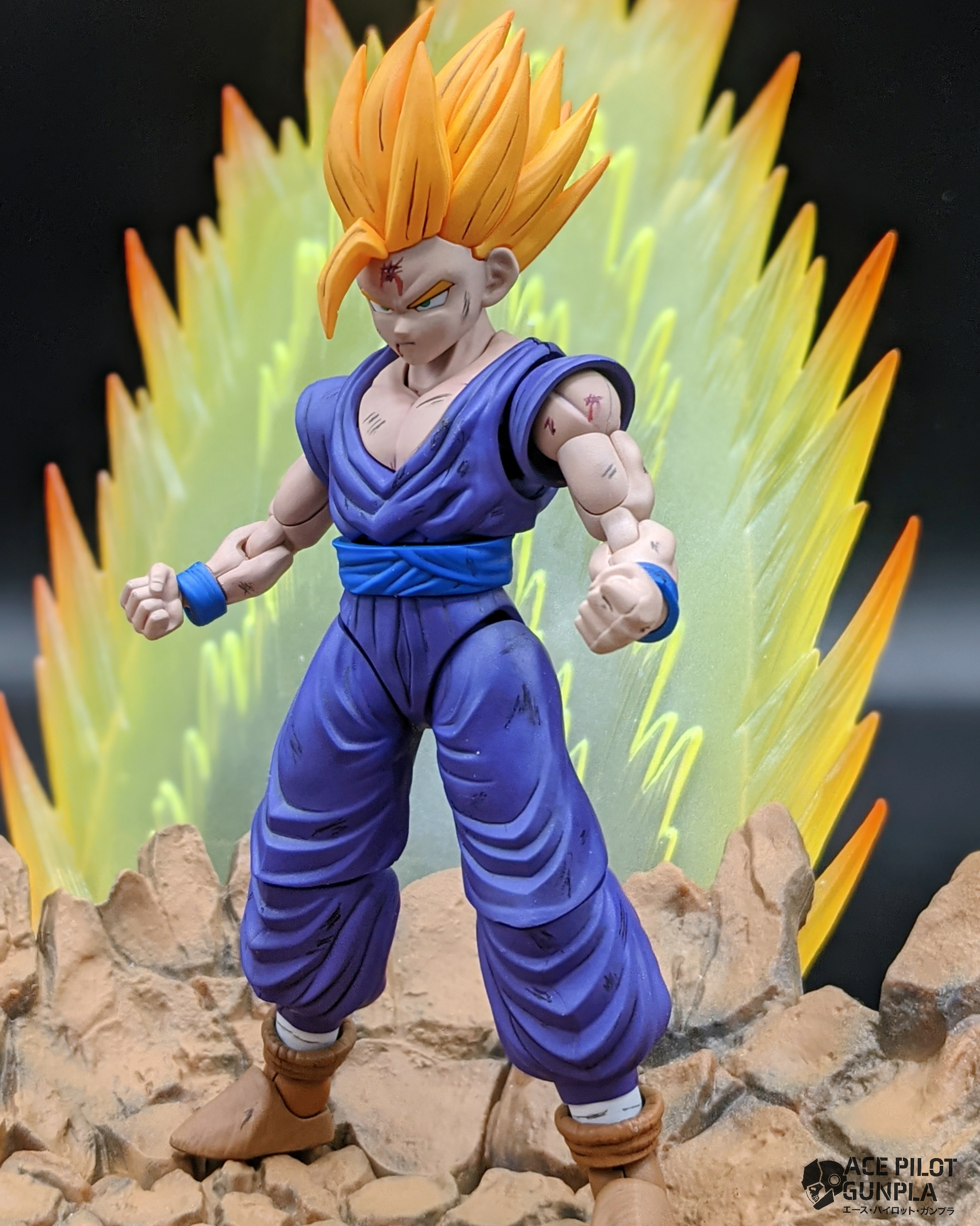 Took a breather from gunpla to make a Dragon Ball Figure-rise kit from one of my favorite animes I grew up with! Even though this isn’t my first figure-rise kit, I decided to experiment with a few new techniques like adding scuff marks to the skin and clothes and blood. I think the result came out great and definitely is more reminiscent of the Gohan’s look facing off against Perfect Cell. I tried to create a variety of poses from the show as well by playing with angles and effect parts.