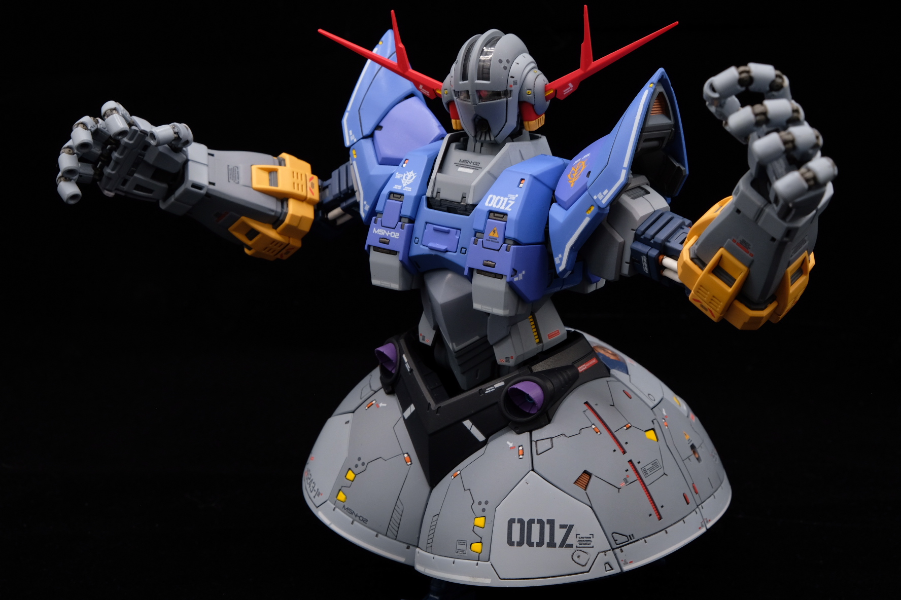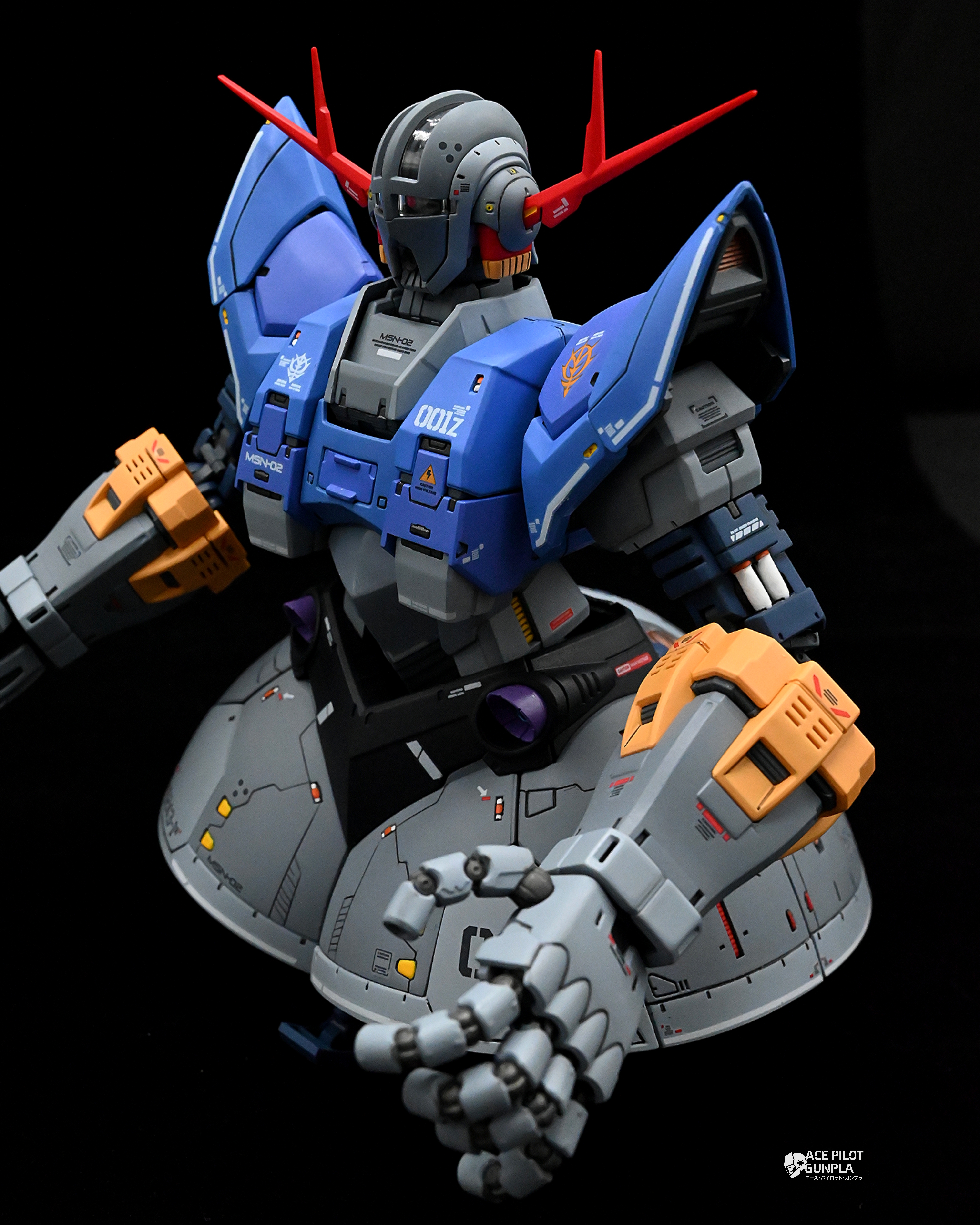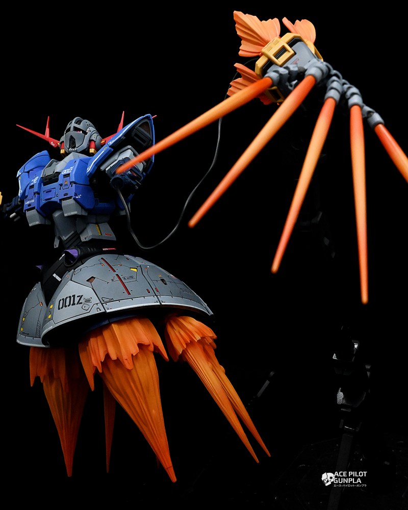 The RG Zeong is perfect kit for those looking to put a lot of detailing into the inner frame with some impressive out of the box detailing on both the interior and on the surface. For this build, I added a lot of panel line scribing particularly on the waist area that was a bit challenging, but turned out great in the end result! The kit has some amazing articulation in the waist, head, monoeye and fingers lending itself to some great poses! The monoeyes have a similar mechanic to the zaku monoeyes where the eye will track when you move the head left and right but goes a step further by moving being able to move it up into the visor area. My only gripe is that the stands that can hold up the hands when using the wire are not very big, meaning you’ll have to find another means to pose them higher or keep them low to the ground. Out of the box, the kit comes with some great color separation, and I added my own spin on the greys and blues using a lot of the anchoret paints I stocked up on last year. For a kit that I was not interested in design wise, Bandai put out a stellar kit that really helped capture my attention with the intricate details and it’s one of my favorite RG builds to date!